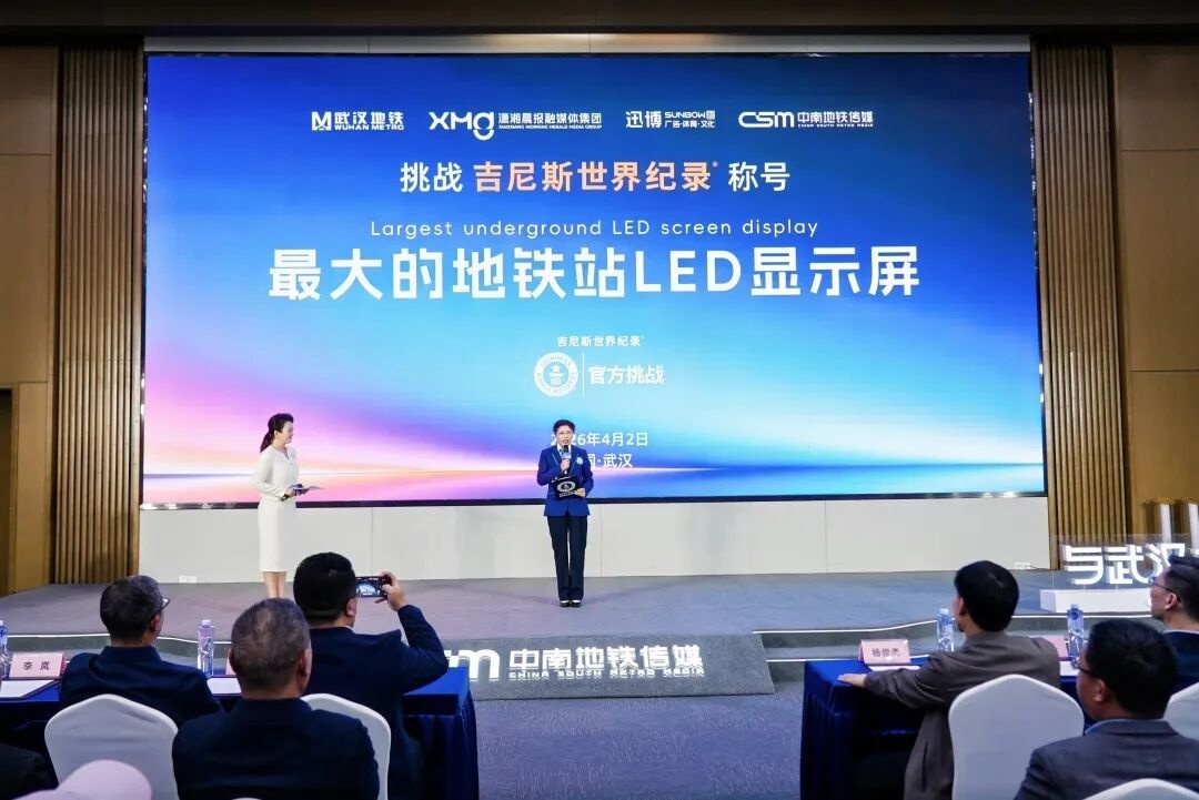 眼前这块将乘客“包裹”住的超长环形巨幕,由中南地铁传媒携手武汉迅博文体广告发展有限公司共同打造,今年4月创下了最新的吉尼斯世界纪录。