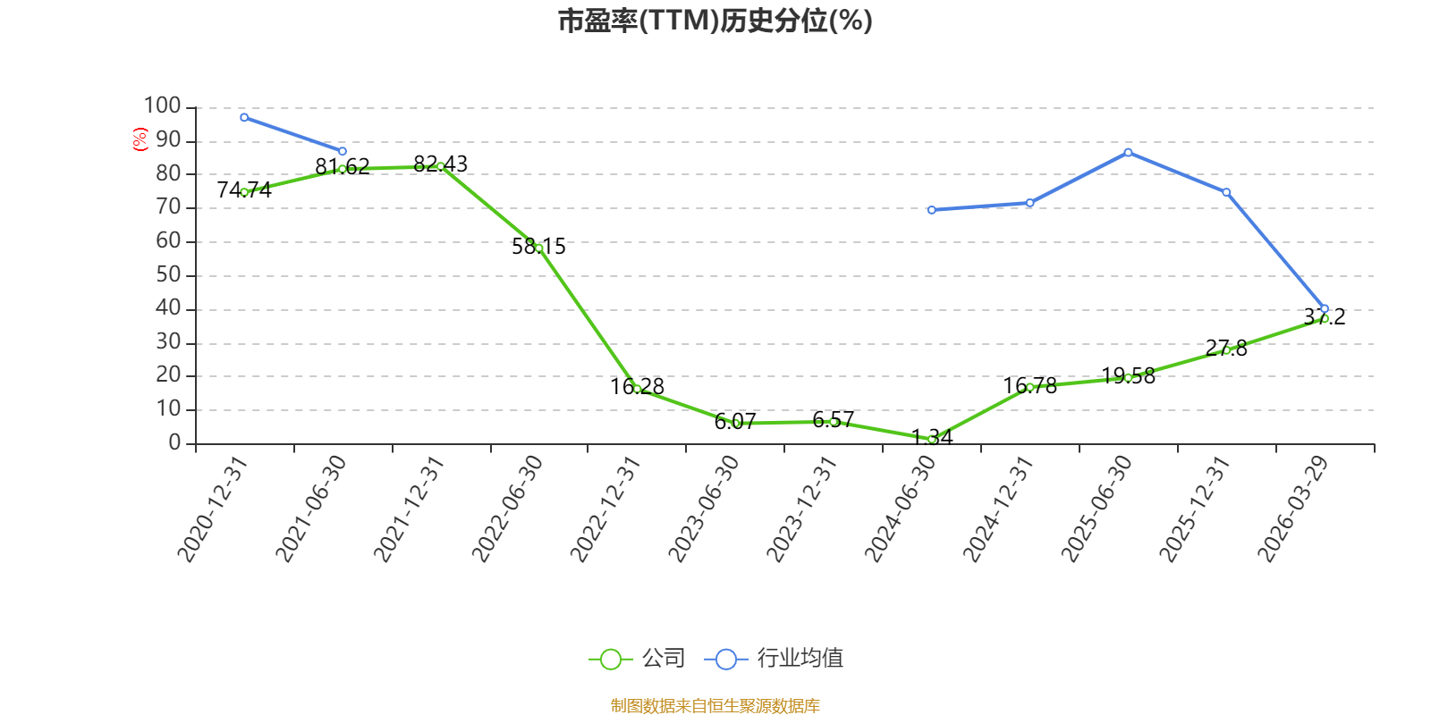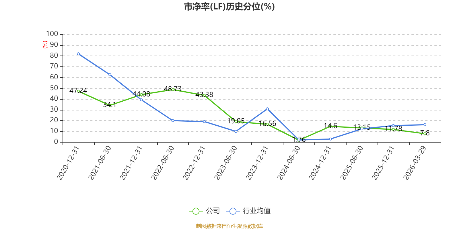 市盈率、市净率为负时,不显示当期分位数,会导致折线图中断。