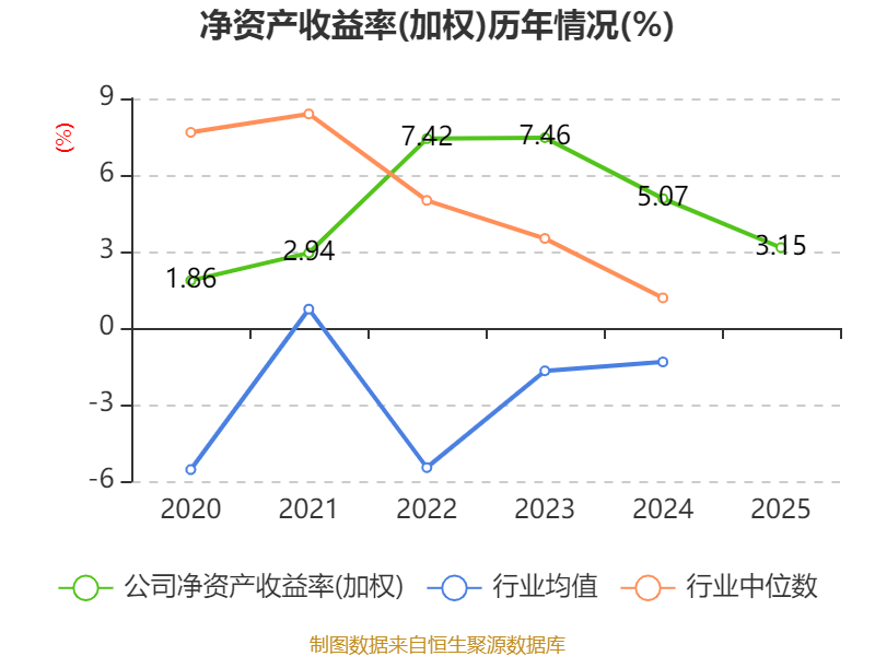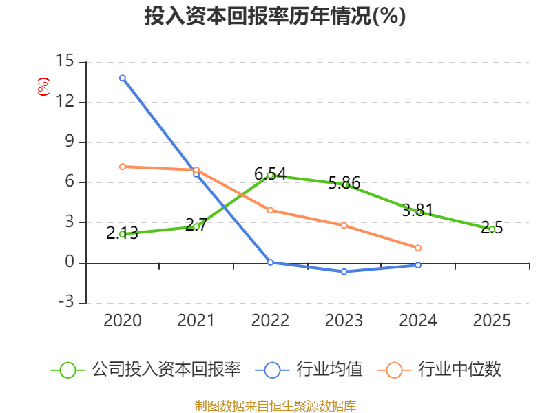 数据显示,2025年公司加权平均净资产收益率为3.15%,较上年同期下降1.92个百分点。公司2025年投入资本回报率为2.5%,较上年同期下降1.31个百分点。