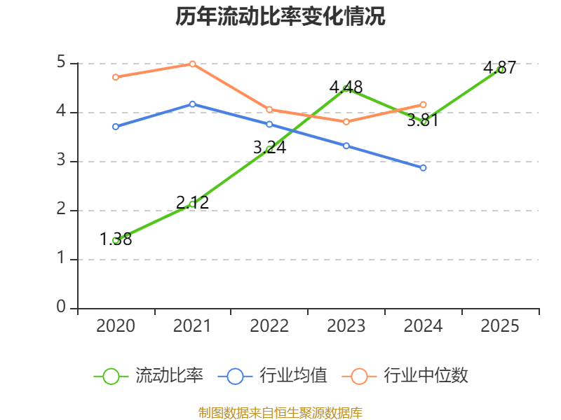 2025年,公司流动比率为4.87,速动比率为3.17。