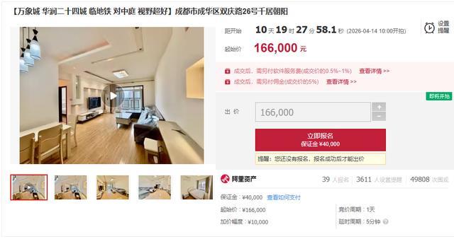 近日,四川成都一套商品住宅上架阿里拍卖平台引起众人关注。